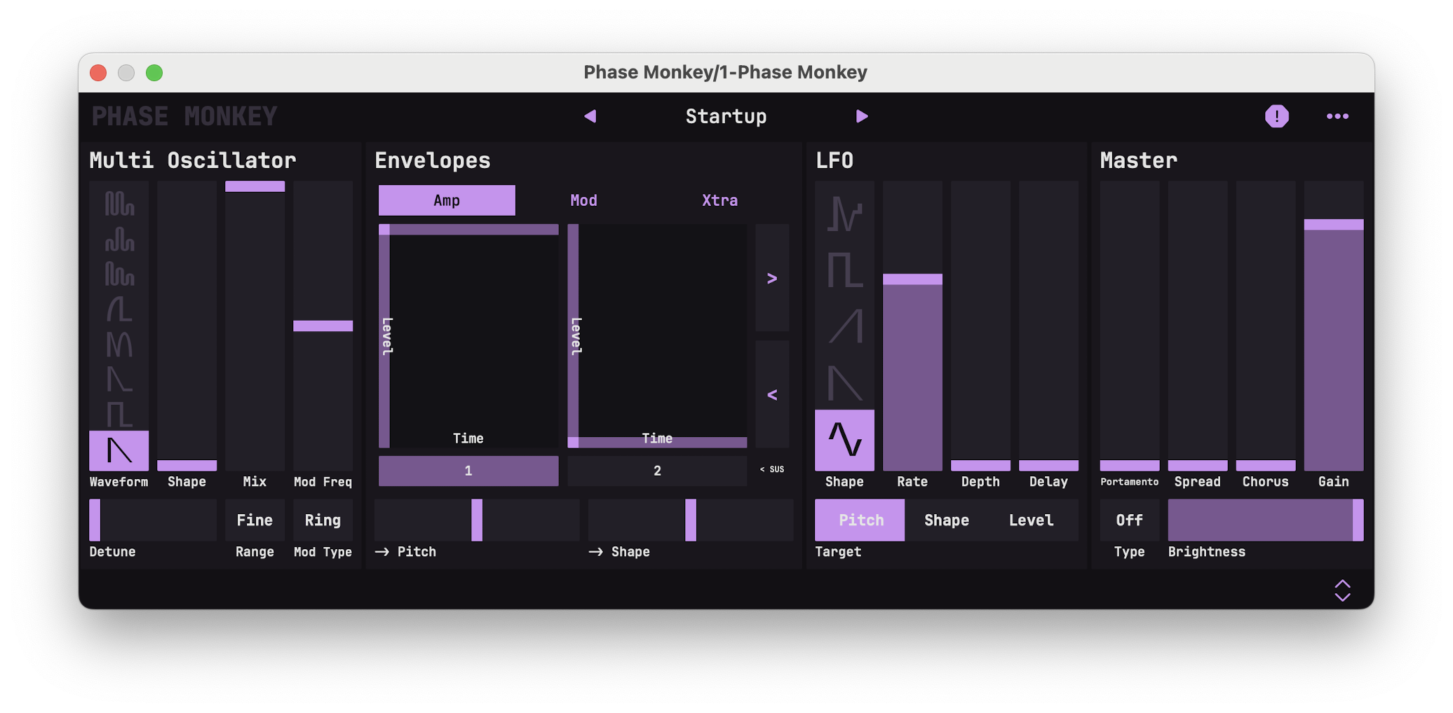 Phase Monkey puts a fresh look on the classic, phase distortion synthesizers of the late 1980s. We’ve distilled the essential elements of this sound to a few controls so you can easily explore the possibilities offered by phase distortion synthesis.